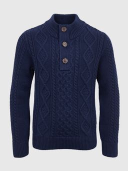 - Chlapecký jednobarevný svetr s pleteným vzorem.