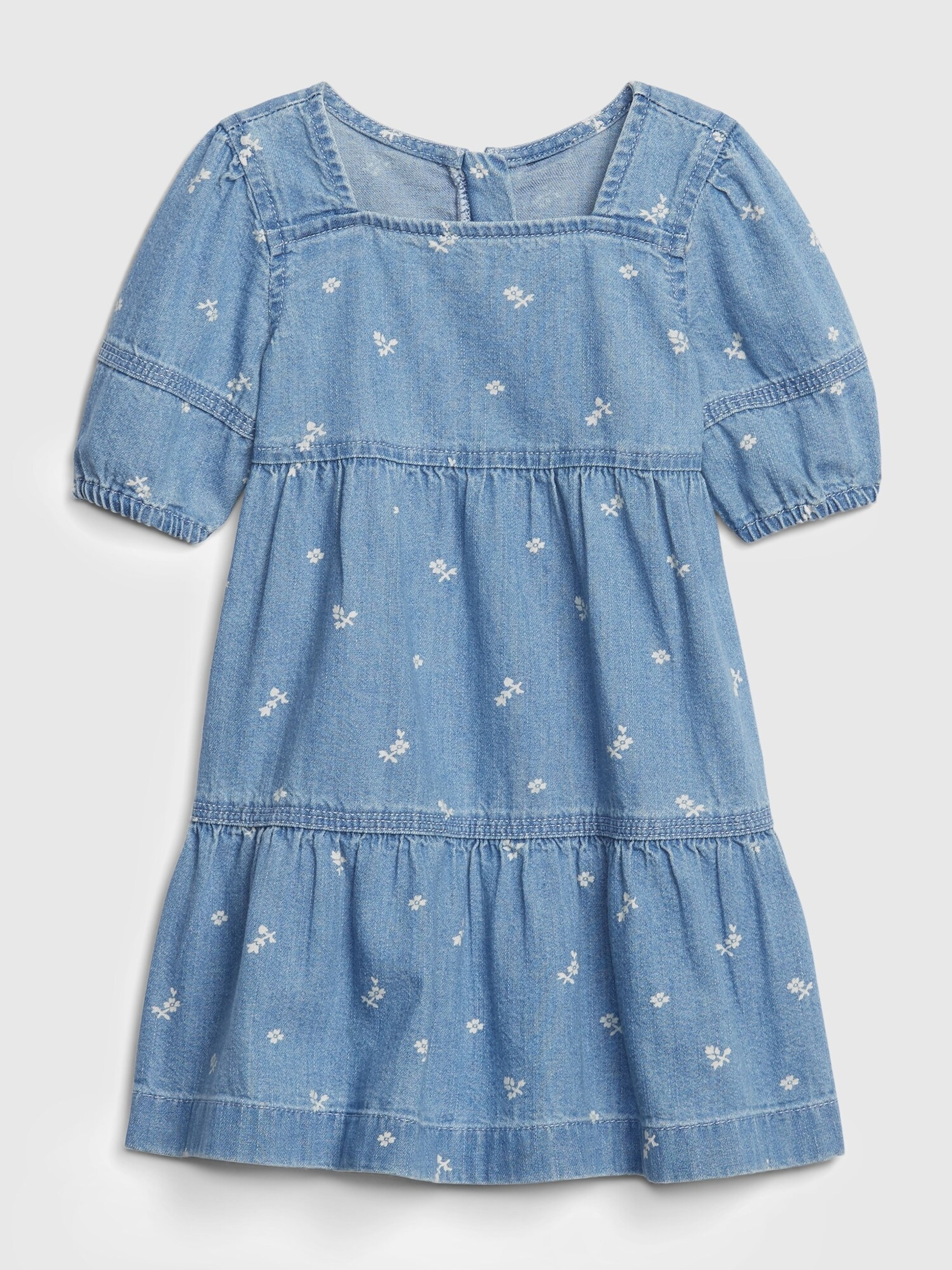 - Dívčí denimové šaty Gap s 3/4 rukávem, s řasením v pase a na sukni