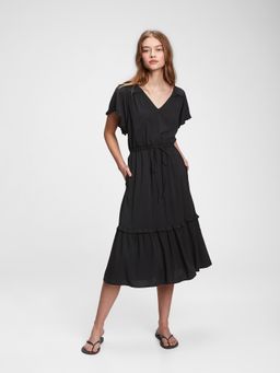 - Šaty mají krátký rukáv s volánkem a také dvě boční kapsy.