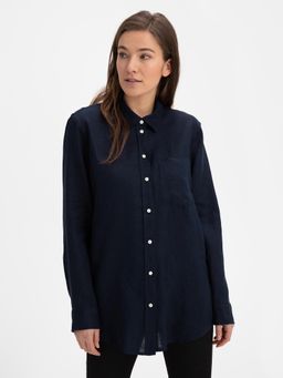 - Lněná košile se zapínáním na knoflíky, dlouhý rukáv do mažety, kapsička