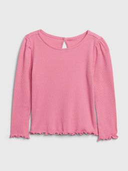- Dívčí žebrované tričko z měkkého úpletu s dlouhým rukávem a volánkovým lemem.