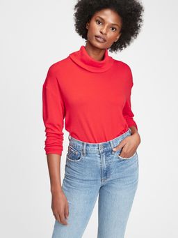 - Jednobarevný dámský svetr Gap s volným rolákem a rozparky