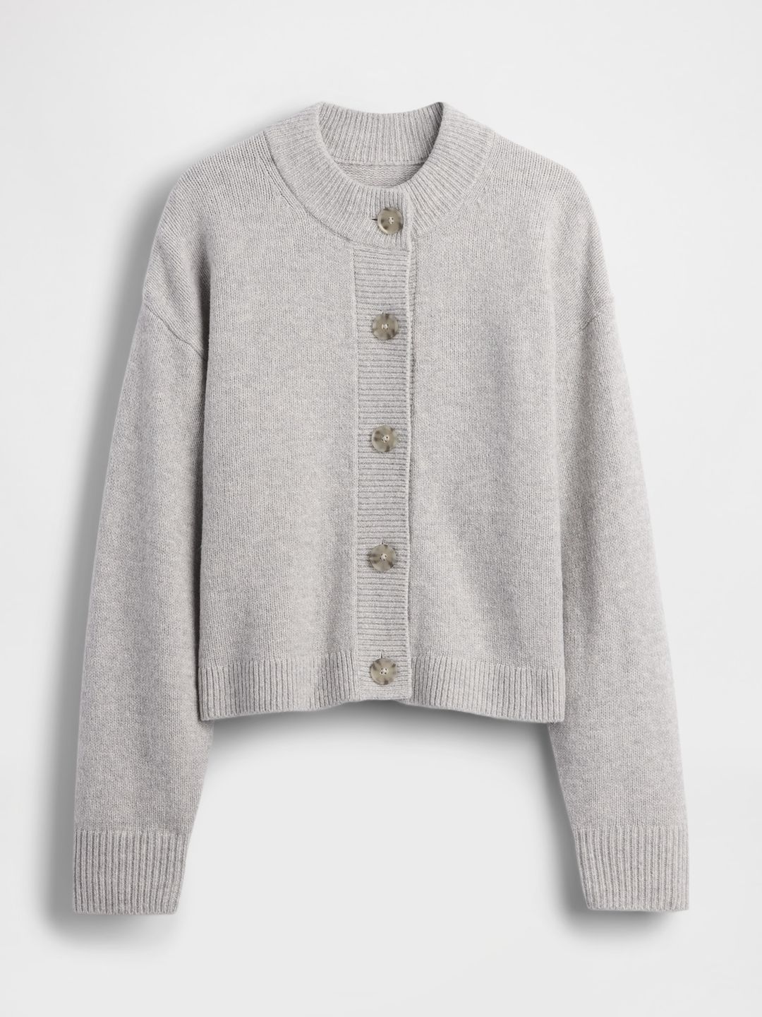 - Pletený design s kulatým výstřihem, dlouhými rukávy se spadlými rameny a zapínáním na knoflíky vpředu působí stylově a elegantně.