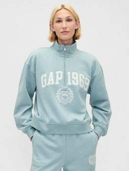 - Stojáček s polovičním zipem doplňují dlouhé rukávy se spadlými rameny a žebrované manžety i spodní lem.