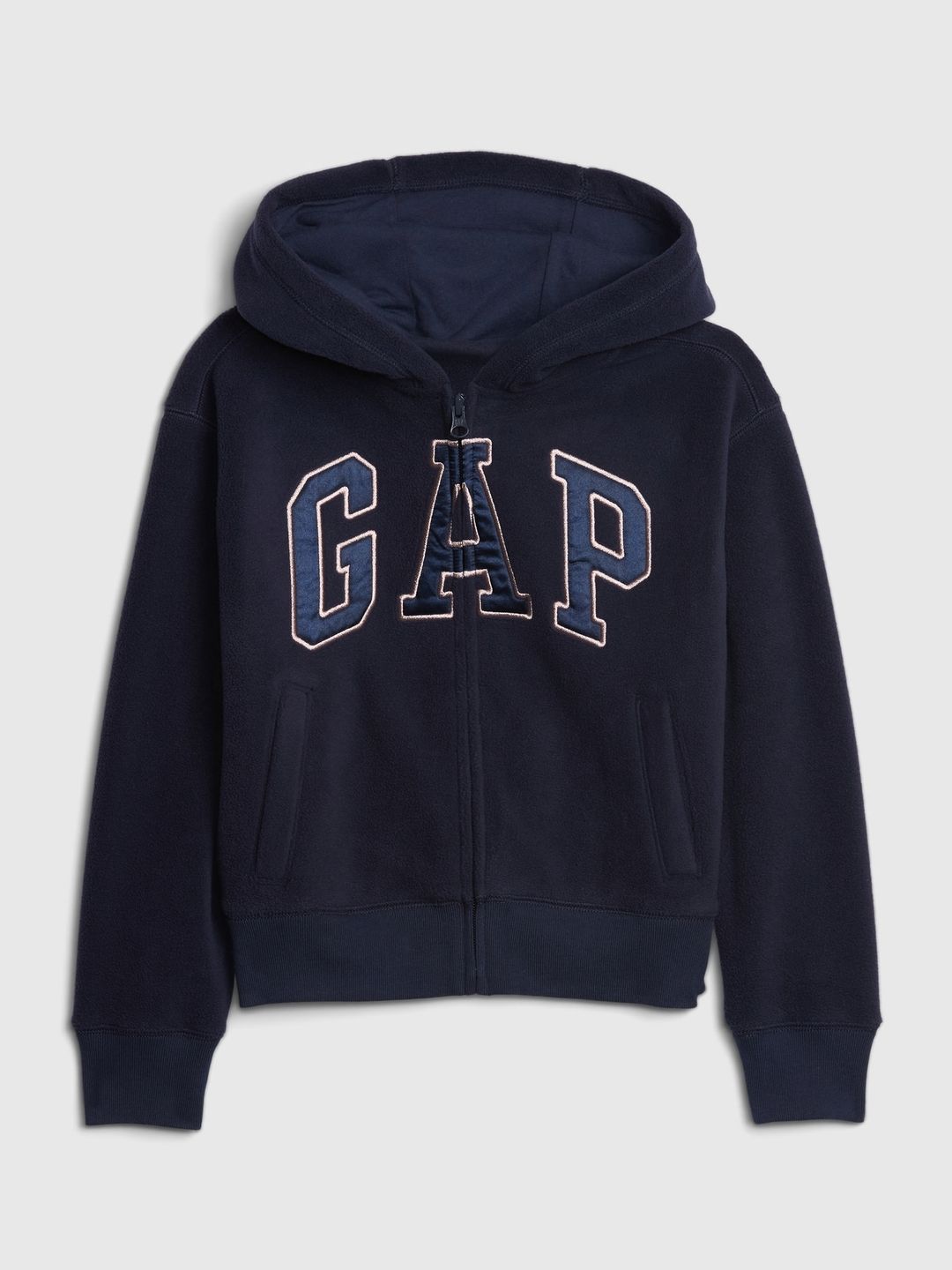 - Fleecová mikina s kapucí a výrazným našitým logem Gap na přední straně
