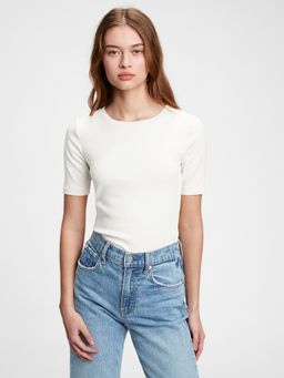 - Jemný žebrovaný úplet s krátkým rukávem a kulatým výstřihem.