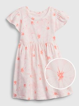 - Dívčí šaty v růžové barvě s drobným vzorem.