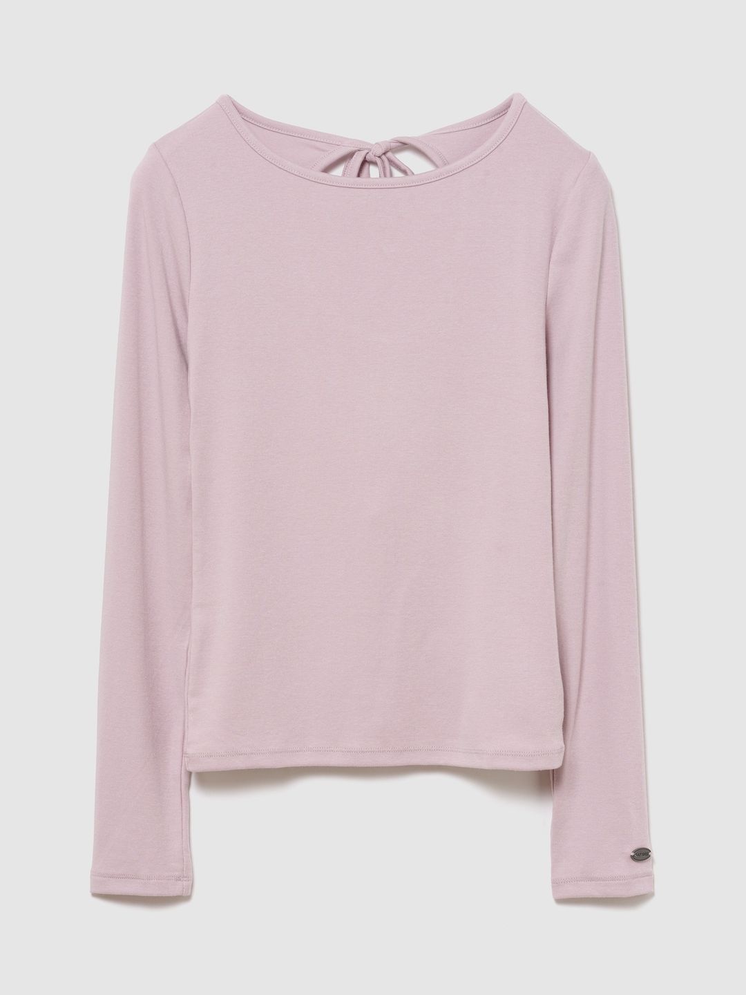 - Kulatý výstřih doplňuje zavazování a průstřih na zadní straně.
