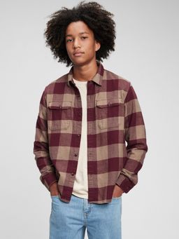 Chlapecká kostkovaná košile Gap. Hřejivý flanel. Dlouhé rukávy s manžetami. Límeček u krku a zapínání na knoflíčky. Na hrudi dvě kapsy s klopami. 100% organická bavlna.