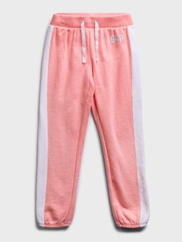 - Dívčí tepláky Gap v růžové barvě s bílým pruhem.