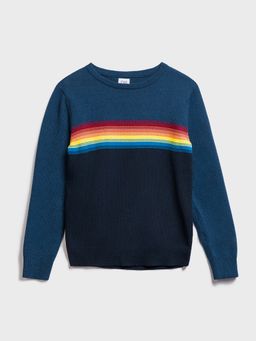 - Příjmený svetr s dlouhým rukávem, kulatým výstřihem a barevným pruhováním.