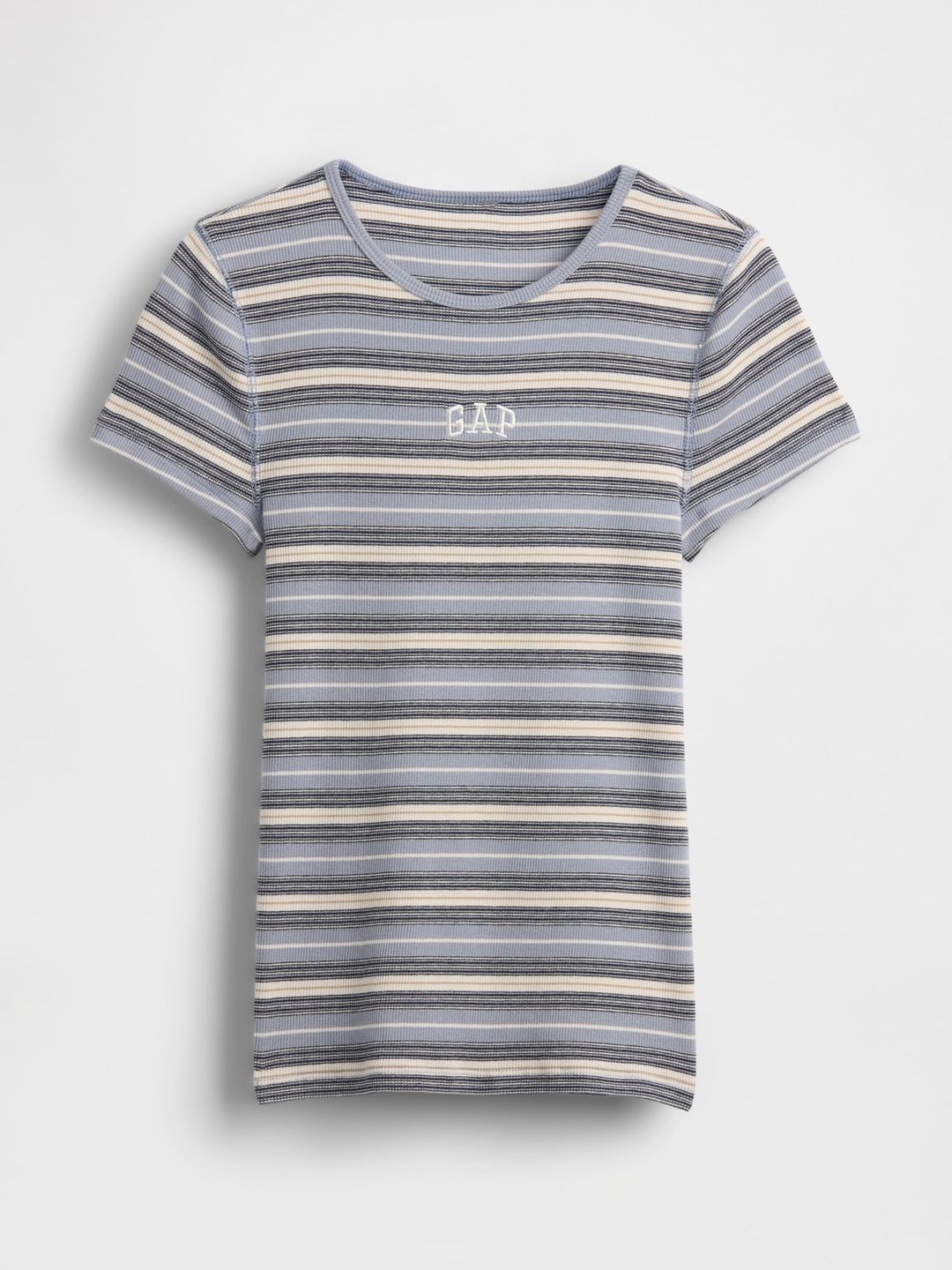 - Kulatý výstřih a krátké rukávy doplňuje logo Gap.